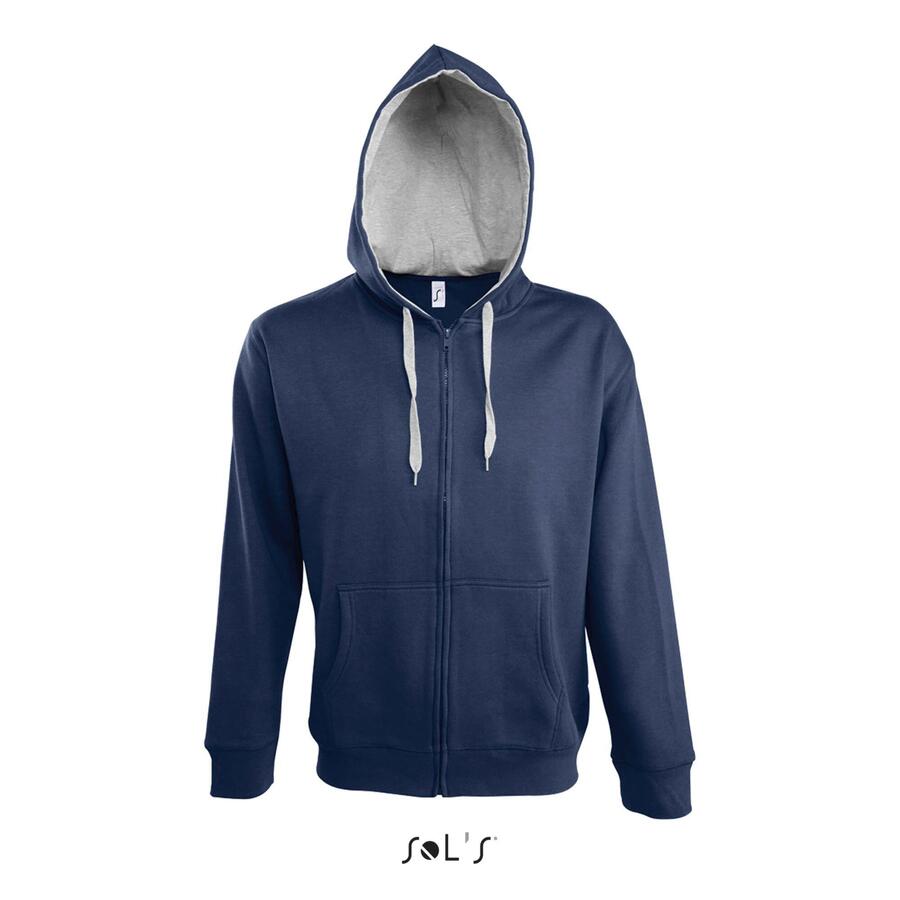 Мужская двухцветная куртка на молнии с контрастной подкладкой на капюшоне.