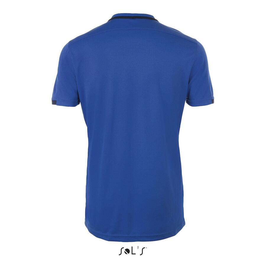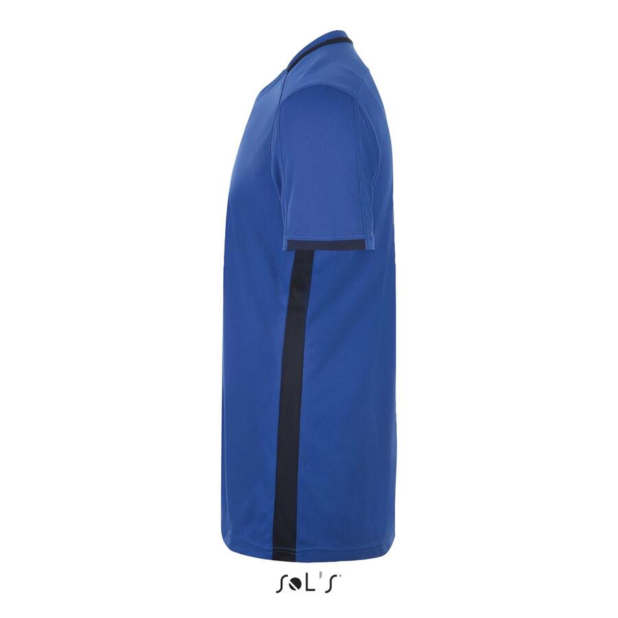 Взрослая контрастная футболка. 100% дышащий полиэстер. 150 г/м². V-образный вырез с контрастной отделкой. Контрастные сетчатые вставки по бокам.