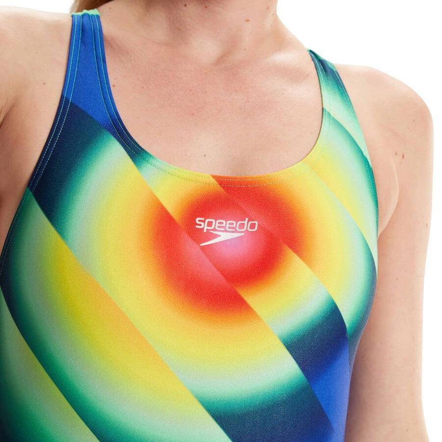 Благодаря впечатляющей графике и ярким цветам этот купальник Powerback станет настоящей приманкой для глаз во время тренировок. Узкие бретели и открытая спина обеспечивают полную свободу движений и максимальный комфорт. Изготовлен из прочного, быстросохнущего и на 100% устойчивого к хлору материала Endurance+. Одна из нитей этой ткани изготовлена из 100% переработанных отходов потребления, таких как переработанные пластиковые бутылки.