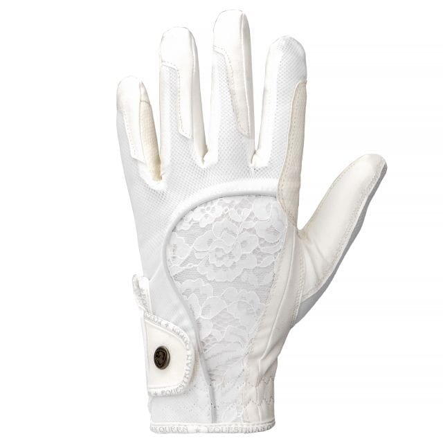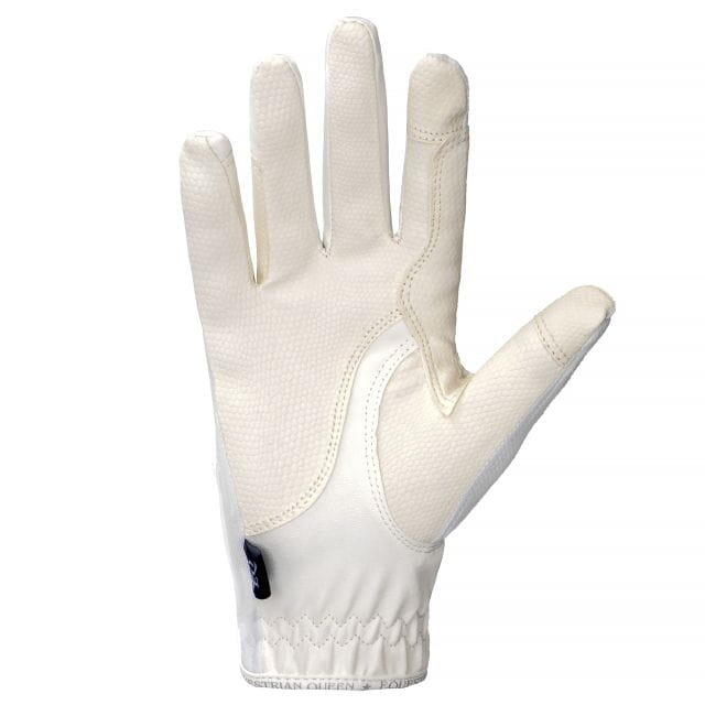 Перчатки, которые добавят элегантности и стиля вашему образу! Внутренняя часть перчаток выполнена из нескользящей искусственной кожи для надежного захвата поводьев. Внешняя часть выполнена из эластичной сетки, которая обеспечивает воздухопроницаемость и хорошую посадку. Перчатки также украшены тонким цветочным кружевом. Они оснащены прочной застежкой-липучкой и декоративной полоской с надписью Equestrian Queen.