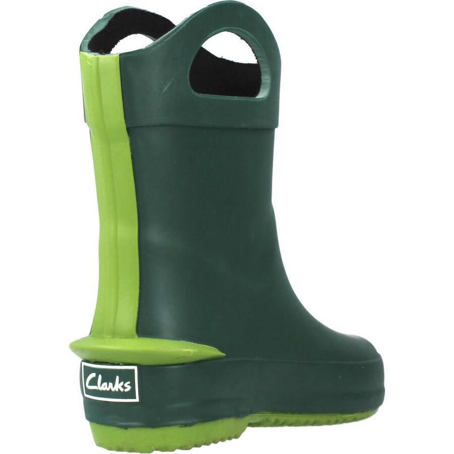 Модель Clarks Tarri Dash T зелёного цвета, изготовлена из текстиля. Внешняя оболочка — резиновая. Тип конструкции: литьё под давлением. Производство: Китай.