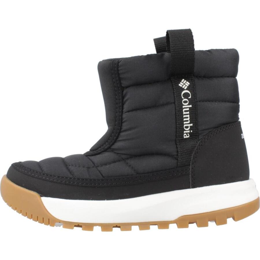 Модель Columbia Children's Snowtrot Mid, чёрного цвета, текстильная. Верх: синтетический. Конструкция: слип-он. Сделано во Вьетнаме.