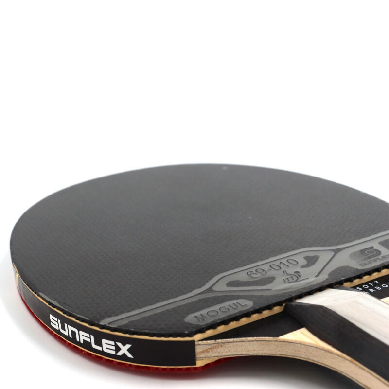 Ракетка для настольного тенниса Sunflex Supreme Soft Carbon. Профессиональная ракетка для настольного тенниса Sunflex SUPREME SOFT CARBON с губкой 2,2 мм и резиной Mogul, одобрена ITTF, с карбоновым флисом, системой Ergo Grip и вогнутой ручкой.