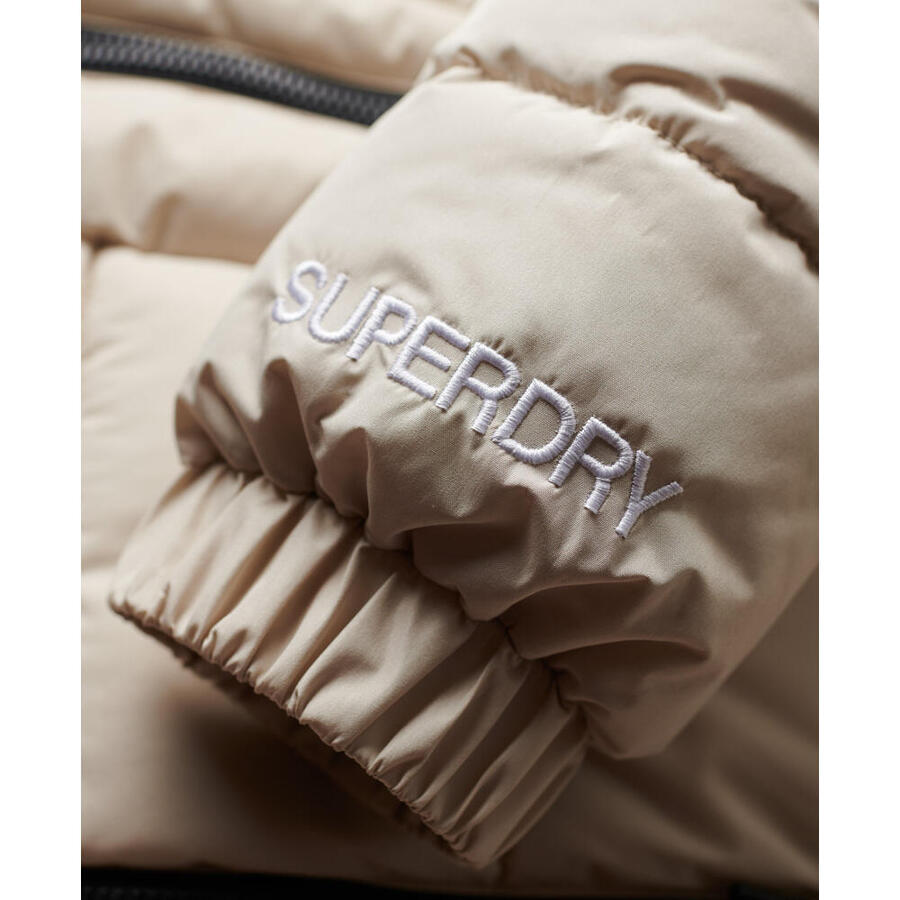 Утеплённая куртка с капюшоном SUPERDRY изготовлена из переработанного полиэстера, что создаёт модный и экологичный образ. Она идеально подходит для занятий спортом или прохладной погоды, сохраняя тепло и сухость, и придаёт вашему образу современный городской стиль.