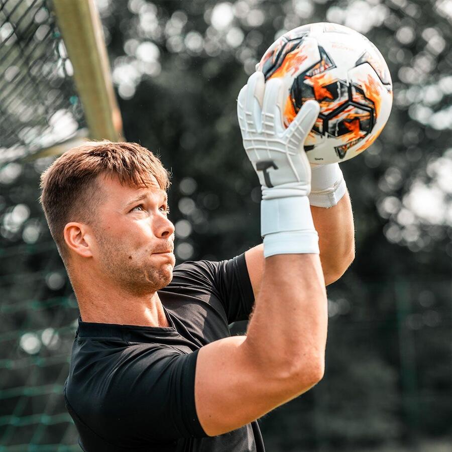 … Гибридный крой. Максимальная поверхность ловли вплоть до кончиков пальцев: гибридный крой специально обернут вокруг пальцев, предлагая вам еще большую контактную поверхность. Для еще более легкой ловли с оптимальным контролем мяча.