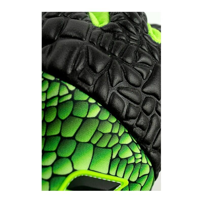 Будьте готовы дать отпор амбициям нападающих вместе с Venomous! Эта перчатка оснащена технологией Reusch Grip Gold X, созданной на основе эксклюзивной формулы Reusch Grip Gold, которая сочетает в себе клейкие частицы и новый дизайн латекса. Но это ещё не всё! Эта модель оснащена новой системой застёжки AdaptiveFlex: она обеспечивает гибкость и плотное прилегание к запястью, подстраиваясь под толщину запястья каждого вратаря. Конструкция без ремешков делает перчатку по-настоящему особенной и привлекательной. Отворот изготовлен из смеси эластичного неопрена в нижней части и сверхмягкого тисненого латекса в верхней части отворота и на пальцах. Полностью латексный отворот гарантирует мягкость, амортизацию и плотное, но гибкое прилегание. Тиснение под змеиную кожу обеспечивает лучший контроль при ударах и уникальный внешний вид. Чтобы отличить эту модель от остальной коллекции, был разработан новый крой пальцев: негативный гибридный крой обеспечивает посадку, адаптирующуюся к латексному отвороту. Новый крой основан на конструкции пальцев с негативным сшиванием и одной непрерывной ластовицей. Для обеспечения наилучшего контакта с мячом был добавлен негативный эволюционный крой с закругленными кончиками пальцев на мизинце и указательном пальце.