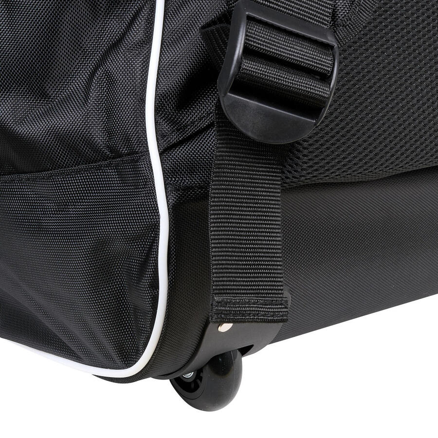 Сумка для переноски Sportime SUP Explorer: идеальный спутник для вашего SUP-доски / Сумка для транспортировки Sportime Explorer для SUP-досок — идеальное решение для комфортной транспортировки SUP-досок как по дороге, так и по бездорожью. Благодаря большим колесам вы легко доставите SUP-доску к воде. Если рельеф становится более сложным, используйте удобные лямки рюкзака на спине для удобной переноски на спине. / / Подробнее о товаре: / Материал: нейлон Oxford / Размеры: 90 x 37 x 34 см / Цвет: черный с белым принтом
