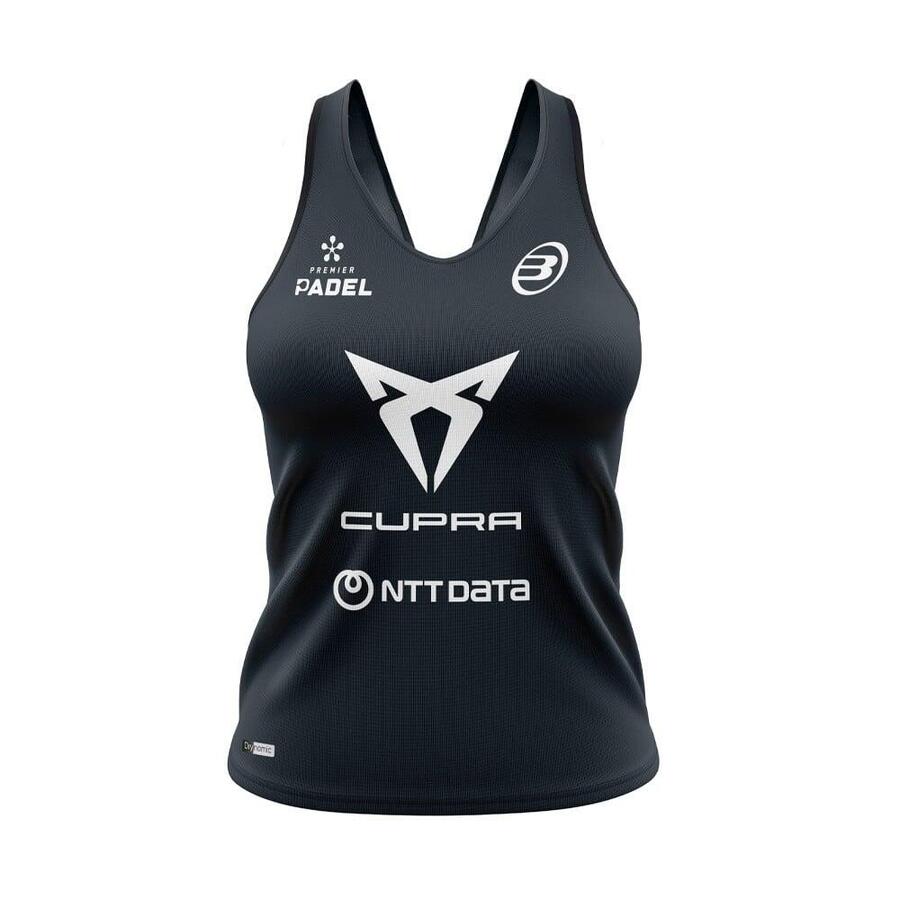 Женская футболка Bullpadel Brete Delfi Brea. Женская футболка Bullpadel Brete Delfi Brea — официальный выбор игрока в падел-теннис Премьер-лиги Дельфи Бреа. Эта эластичная футболка из джерси, изготовленная из 86% полиэстера и 14% эластана, обеспечивает невероятную свободу движений и быстро сохнет благодаря усовершенствованной ткани Dynamic. Безрукавка обеспечивает большую свободу движений в области рук и идеально подходит для интенсивных тренировок. Кроме того, логотипы спонсоров Delfi Brea добавляют аутентичности и стильности. Эта футболка идеально подходит для игроков в падел, которые хотят сочетать функциональность и моду на корте.