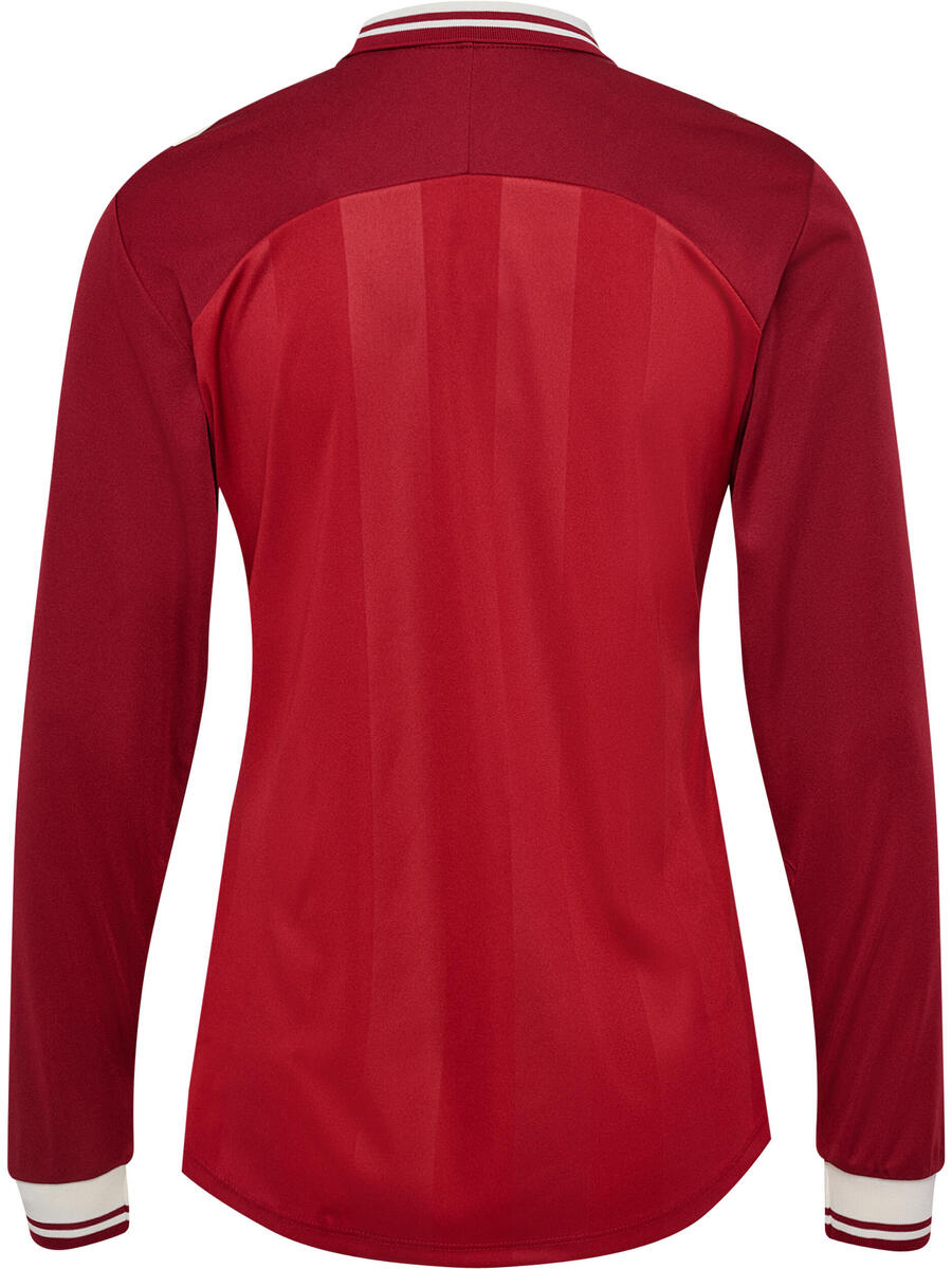 Выходите на поле в официальной домашней футболке женской сборной Дании с длинными рукавами для Евро-2025. Футболка выполнена в темно-красном цвете с тонкими мерцающими полосками и ребристым воротником, что придает ей классический вид. Длинные рукава обеспечивают дополнительную защиту и комфорт, идеально подходят для прохладной погоды. Футболка изготовлена из трикотажного полотна интерлок с мягкой и гладкой поверхностью, что обеспечивает максимальный комфорт, а технология Beecool обеспечивает высокую воздухопроницаемость и быстрое высыхание. Поддержите женскую сборную Дании на Евро-2025.