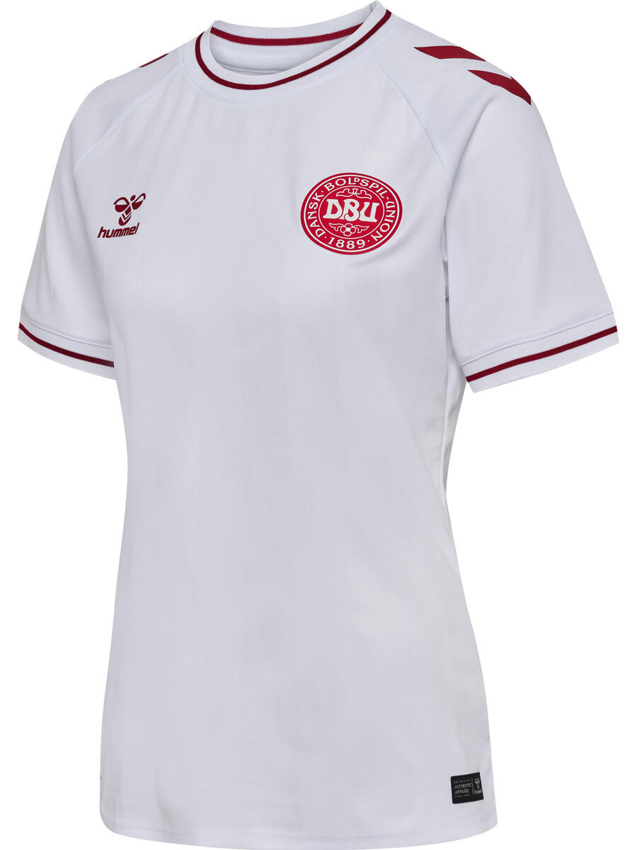 Поддержите женскую сборную Дании в женской выездной футболке DBU 2025 года. Классический белый дизайн с тонкими мерцающими полосками, красными деталями по краям и ребристым воротником придаёт футболке элегантный и вневременный вид. Изготовленная из мягкого и гладкого трикотажа интерлок, она обеспечивает максимальный комфорт. Благодаря технологии Beecool, обеспечивающей высокую воздухопроницаемость и быстросохнущую способность, футболка обеспечивает приятную прохладу как на поле, так и за его пределами. Выходите на поле в официальной женской выездной футболке DBU чемпионата Европы 2025 года.