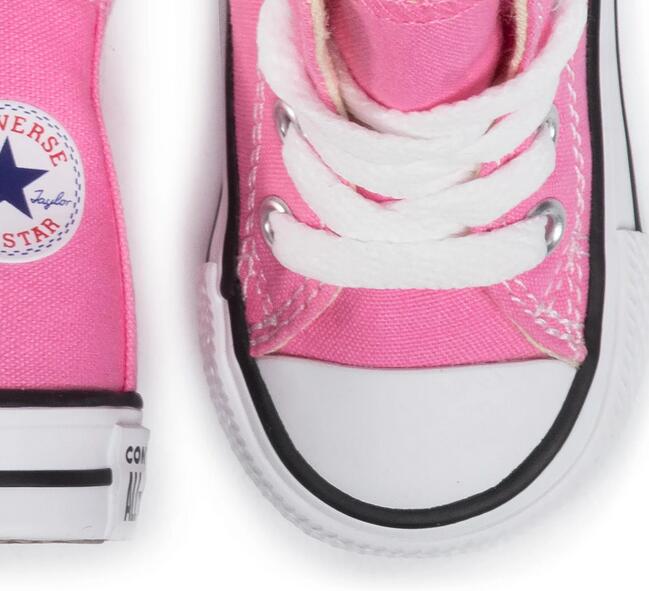 Модель CT All Star Hi от Converse розового цвета с текстильным верхом. Вулканизированная конструкция. Сделано во Вьетнаме.