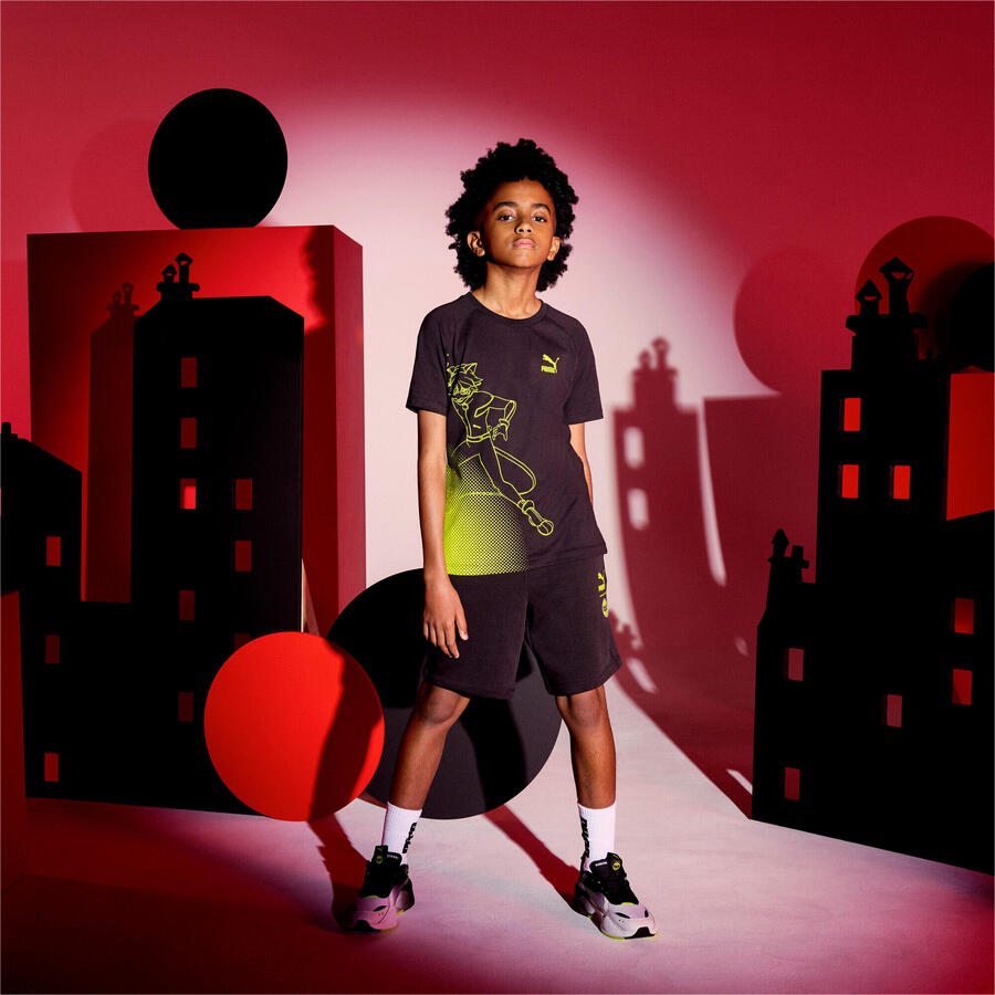 В сотрудничестве с героями сериала Чудесные истории о божьей коровке и Нуар-Коте, всемирно известной телезвездой, мы создали уникальную коллекцию. Эта версия RS-X вдохновлена главным героем сериала, Котом Нуаром, с темным узором по всему верху и маской на пятке. Низкий верх из сетки и текстиля. Горошек на стельке. 3D-принт Curim. Полноразмерная выцветшая накладка на пятке с принтом лапы. Резиновая подошва. Совместный брендинг PUMA x MIRACULOUS. PUMA Youth: рекомендуется для детей старшего возраста и подростков от 8 до 16 лет. Подкладка: 100% текстиль; Подошва: 100% резина; Промежуточная подошва: 100% синтетика; Верх: 56% синтетика, 44% текстиль; Стелька: 100% текстиль.