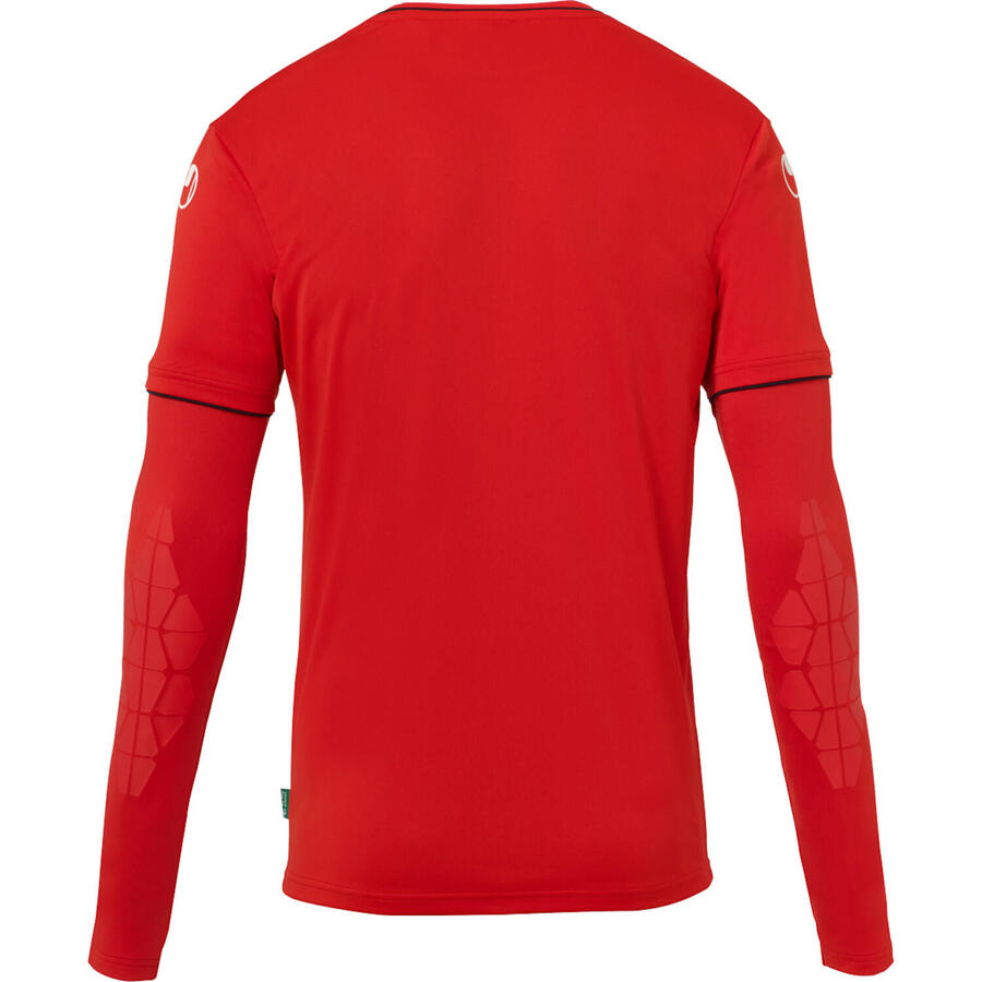 Детская вратарская майка Uhlsport Save Goalkeeper. Принт Smartbreathe LITE. Круглый вырез горловины. Принт из термополиуретана на локтях. Напечатанные логотипы. Плотно облегающие рукава. Материал: 100% полиэстер.