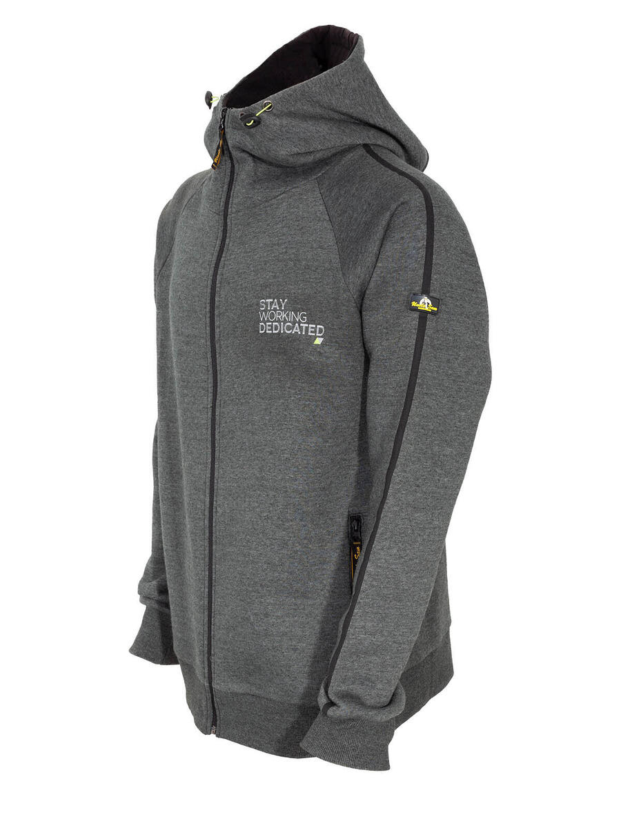 Материал: 52% полиэстер, 48% хлопок, дизайн: пришитый капюшон, начес внутри, рукава реглан, два боковых кармана на молнии, контрастные и светоотражающие детали