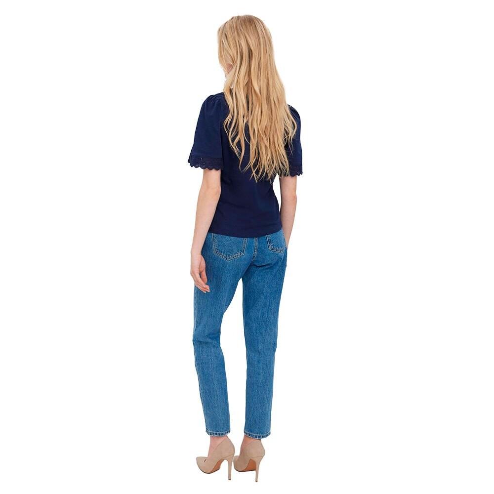 Детальная футболка с круглым вырезом, вышивкой на манжетах и боковых рукавах.