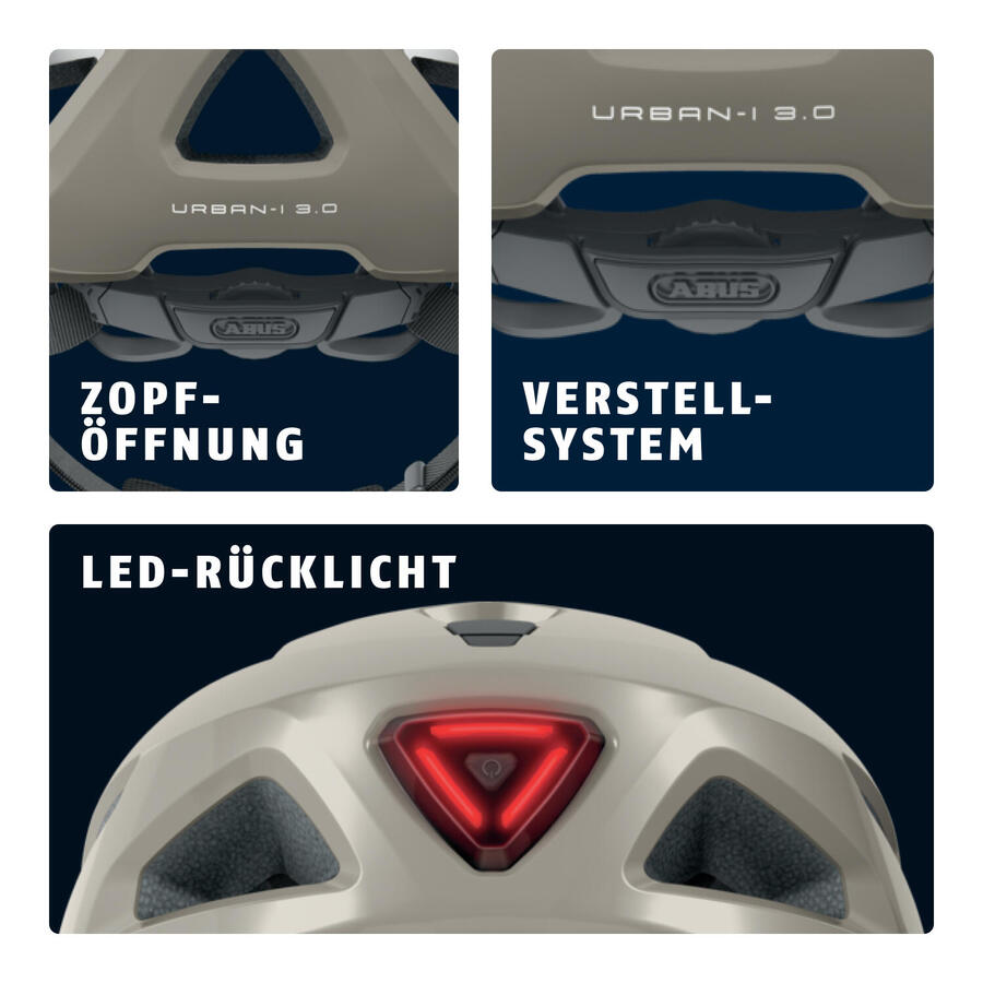 ABUS Urban-I 3.0 — безопасность в городских условияхВысокая защита головы днем и ночью — вот что предлагает велосипедный шлем Urban-I 3.0 от ABUS. Оснащенный многочисленными основными и дополнительными светоотражателями и ярким задним фонарем, вы всегда будете хорошо видны. Хорошо освещенный велосипедный шлем необходим, особенно зимой, когда дорога скользкая и рано темнеет. Благодаря прочному материалу EPS и высококачественной оболочке из поликарбоната, шлем надежно поглощает падения. Благодаря интуитивно понятной системе регулировки его можно точно отрегулировать по форме вашей головы — быстро и точно. С этим городским велосипедным шлемом от ABUS вы идеально подготовлены для городского движения. Другие преимущества продукта: In-Mold: производственный процесс, при котором жесткий пенопласт (EPS) вспенивается в ударопрочную внешнюю оболочку для прочного и надежного соединения. Совместимость с прическами конский хвост: подходит для длинных причесок, таких как косы. Полностью закрытое пластиковое кольцо с системой регулировки. Магнитный замок Fidlock для ремня — магнитная застежка шлема. С сеткой от мух.