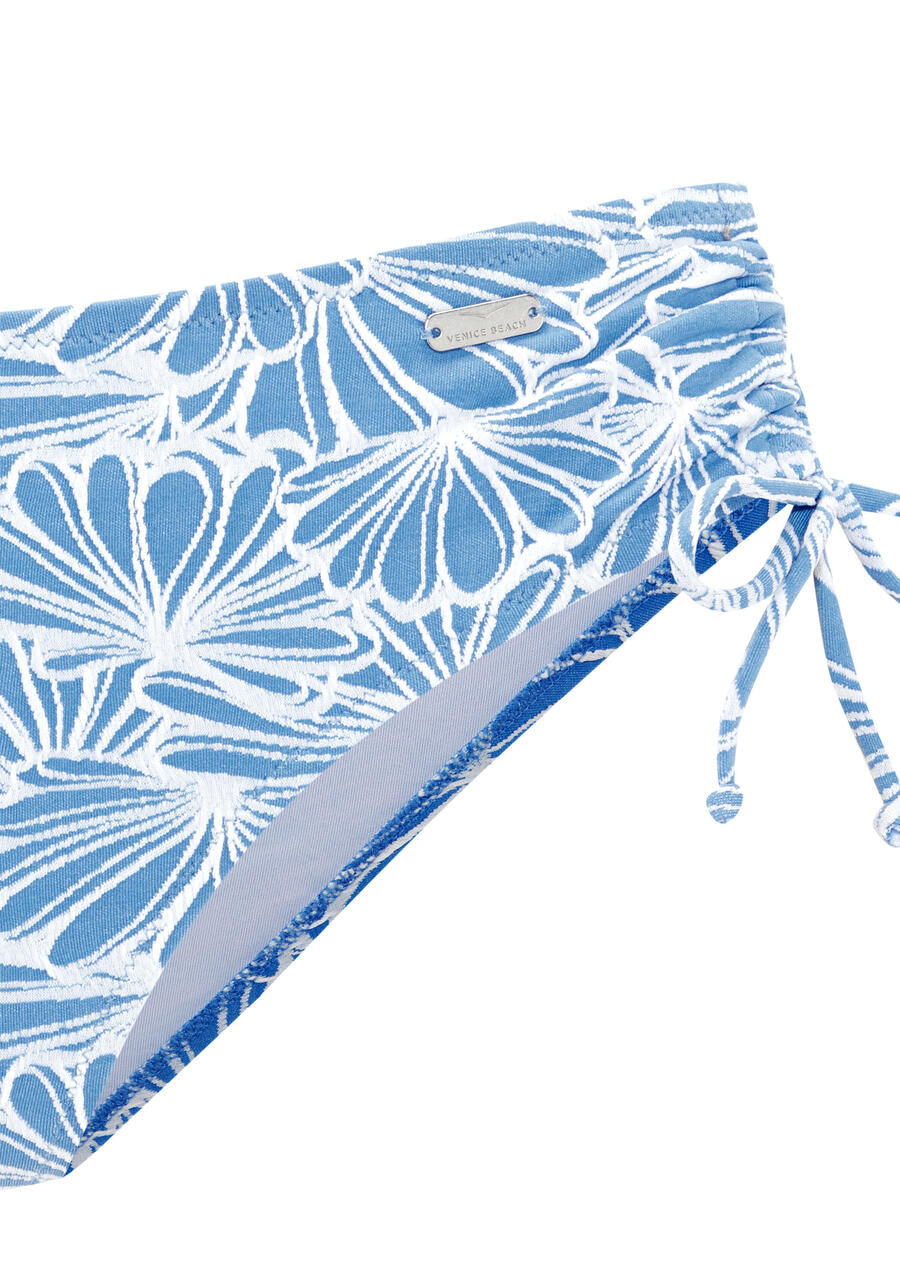 Трусики-бикини Venice Beach. Цветочный принт по всей поверхности, фактурная ткань. Сборки по бокам. Эмблема на поясе. Входит в коллекцию микс-кини. Комфортное качество. FAB-212D
