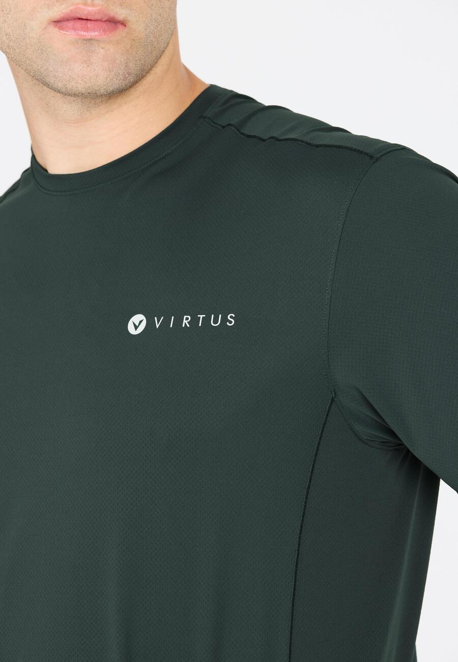 """Finnian"" от Virtus — идеальная футболка для спортивных мужчин, которые ценят качество и функциональность. Изготовленная из 100% полиэстера, она обеспечивает оптимальную свободу движений благодаря технологии растяжения в 4 направлениях и быстросохнущему материалу, сохраняя сухость даже при интенсивных нагрузках. Футболка имеет классический крой и обеспечивает комфортную посадку во время тренировок и отдыха. Благодаря современному дизайну она функциональна и стильна — идеальный выбор для современного активного мужчины.