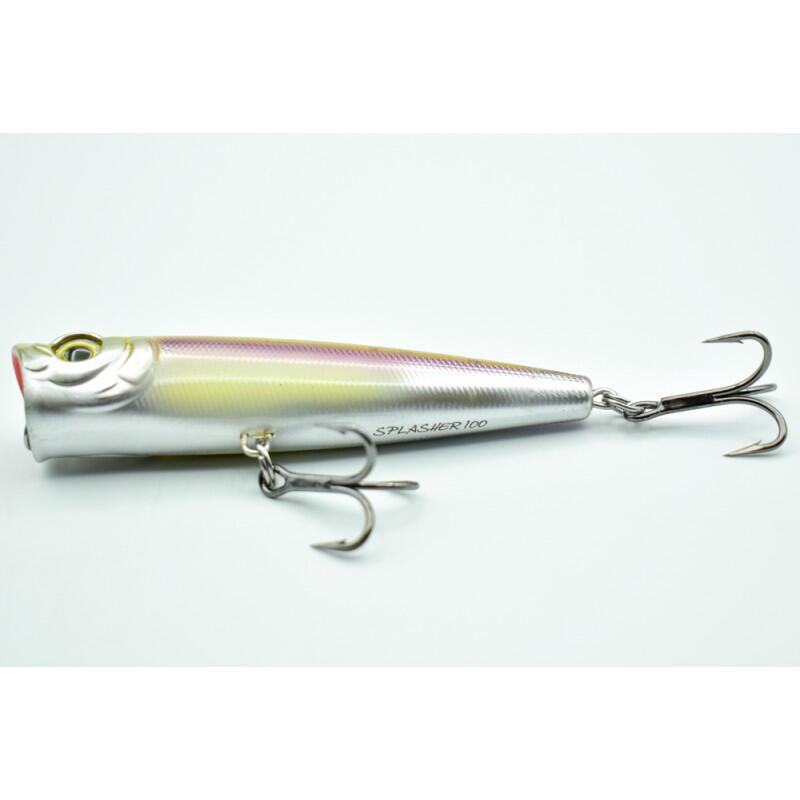 SPLASHER 100 — поппер, подходящий как для пресноводной, так и для морской рыбалки. Он забрасывает далеко и имеет большое вогнутое горлышко; он отлично всплывает и создаёт красивые брызги!