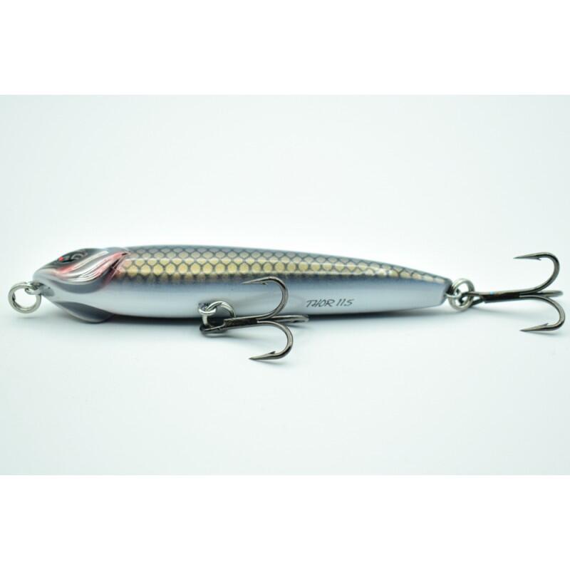 THOR 115 — это стикбейт, обеспечивающий дальние забросы и широкие возможности для исследования акватории. Его плавающие движения, напоминающие прогулку собаки, имитируют убегающую рыбу и провоцируют нападение хищника. Благодаря шумным слизням, он привлекает внимание пресноводных и морских хищников.