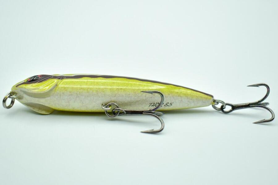 THOR 85 — это приманка-стикбейт, которая позволяет далеко забрасывать приманку и вести широкий поиск. Её очень легко насаживать, а профилированное горлышко создаёт брызги, похожие на поверхностную рыбалку, что очень эффективно и часто приводит к решающим результатам.