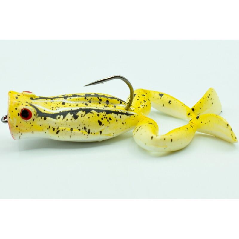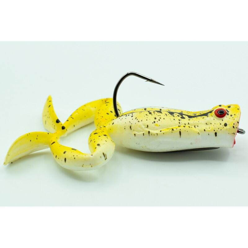 KIMIKO Frog — мягкие попперные приманки диаметром 70 мм, имитирующие маленьких лягушек. Поставляются с насаженным на техасский крючок. Задние лапки стандартно соединены. Можно ловить как медленно, так и рывками.