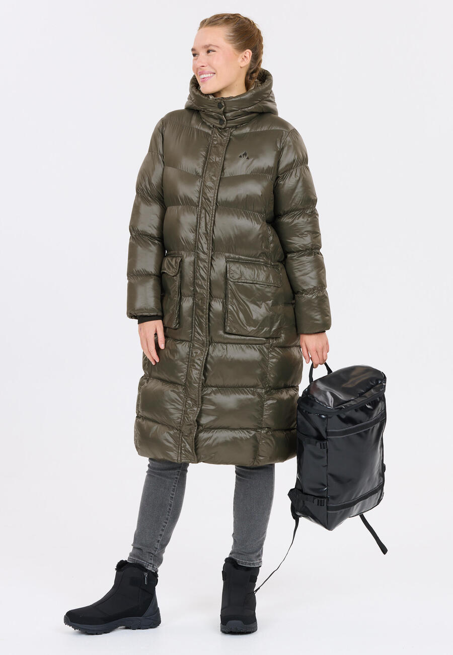 Тепло, стиль и комфорт — модный женский искусственный пуховик Lakewood предлагает всё это. Блестящий полиамидный верх с водоотталкивающей мембраной из термополиуретана обеспечивает водонепроницаемость и защиту от ветра. Утеплитель из полиэстера сохраняет тепло и уют, сохраняя при этом воздухопроницаемость. Эта утеплённая куртка с основной молнией YKK и передними карманами не только практична, но и стильна. Классический крой до колена обеспечивает комфортную посадку, а вневременной дизайн делает Lakewood универсальным спутником для стильных женщин!