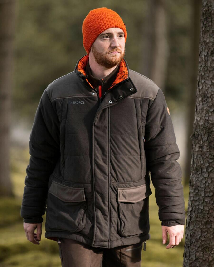 Двусторонняя зимняя куртка Parforce Sphere: идеальный спутник для охотничьего сезона. Универсальность и функциональность. Двусторонняя зимняя куртка Parforce Sphere — идеальный спутник для страстных охотников, которые хотят подготовиться как к загонной, так и к охоте с вышки. Эта куртка сочетает в себе изысканную функциональность и практичность. Двусторонняя куртка выполнена в классическом коричневом цвете, а двусторонняя — в ярком оранжевом цвете с камуфляжным рисунком Sphere. Этот цвет обеспечивает оптимальную видимость во время загонной охоты. Комфорт и защита в любую погоду. Благодаря теплому синтетическому утеплителю плотностью 180 г/м² на корпусе и 160 г/м² на рукавах, куртка обладает отличными теплоизоляционными свойствами. Водонепроницаемая и ветрозащитная мембрана надежно защищает от непогоды, а дышащие свойства куртки обеспечивают комфортную посадку. Это позволяет полностью сосредоточиться на охоте даже в самых неблагоприятных погодных условиях. Практичные детали для большей функциональности. Двусторонняя зимняя куртка Parforce Sphere впечатляет множеством практичных деталей, специально разработанных для нужд охотников. С обеих сторон есть два кармана для рук на молнии с мягкой флисовой подкладкой. обеспечивают тепло рук. Кроме того, два передних кармана с клапанами на магнитной застежке и дренажными отверстиями предлагают достаточно места для хранения важных вещей. Карман Napoleon на молнии и карман для дичи с односторонней молнией также интегрированы на стороне высокой видимости. Светоотражающие полосы на спине и вдоль рукавов повышают видимость в сумерках. Индивидуальные возможности регулировки: Двусторонняя передняя молния обеспечивает дополнительный комфорт, гарантируя гибкость и свободу движений. Регулируемая талия позволяет индивидуально регулировать посадку, гарантируя идеальную посадку куртки. С длиной по спинке около 85 см и длиной рукава около 70 см для размера L куртка идеально подходит для различных размеров тела. Внешняя ткань: 100% полиэстер; подкладка: 100% полиэстер; утеплитель: 100% полиэстер. Дополнительные сведения об изделии: 2 боковых кармана для рук на молнии с мягкой флисовой подкладкой; 2 передних кармана с клапанами на магнитной застежке и люверсами для стока воды; светоотражающая сторона: карман Наполеон на молнии и карман для дичи с односторонней молнией; светоотражающая сторона: светоотражающие полосы на спине и вдоль рукавов; двухсторонняя молния спереди; регулируемая талия; длина по спинке около 85 см для размера L. Длина рукава около 70 см для размера L. Parforce Active: универсальность и функциональность. Линия Active предназначена для охотников, которые ищут одежду, подходящую как для охоты, так и для активного отдыха, например, походов или повседневной носки.