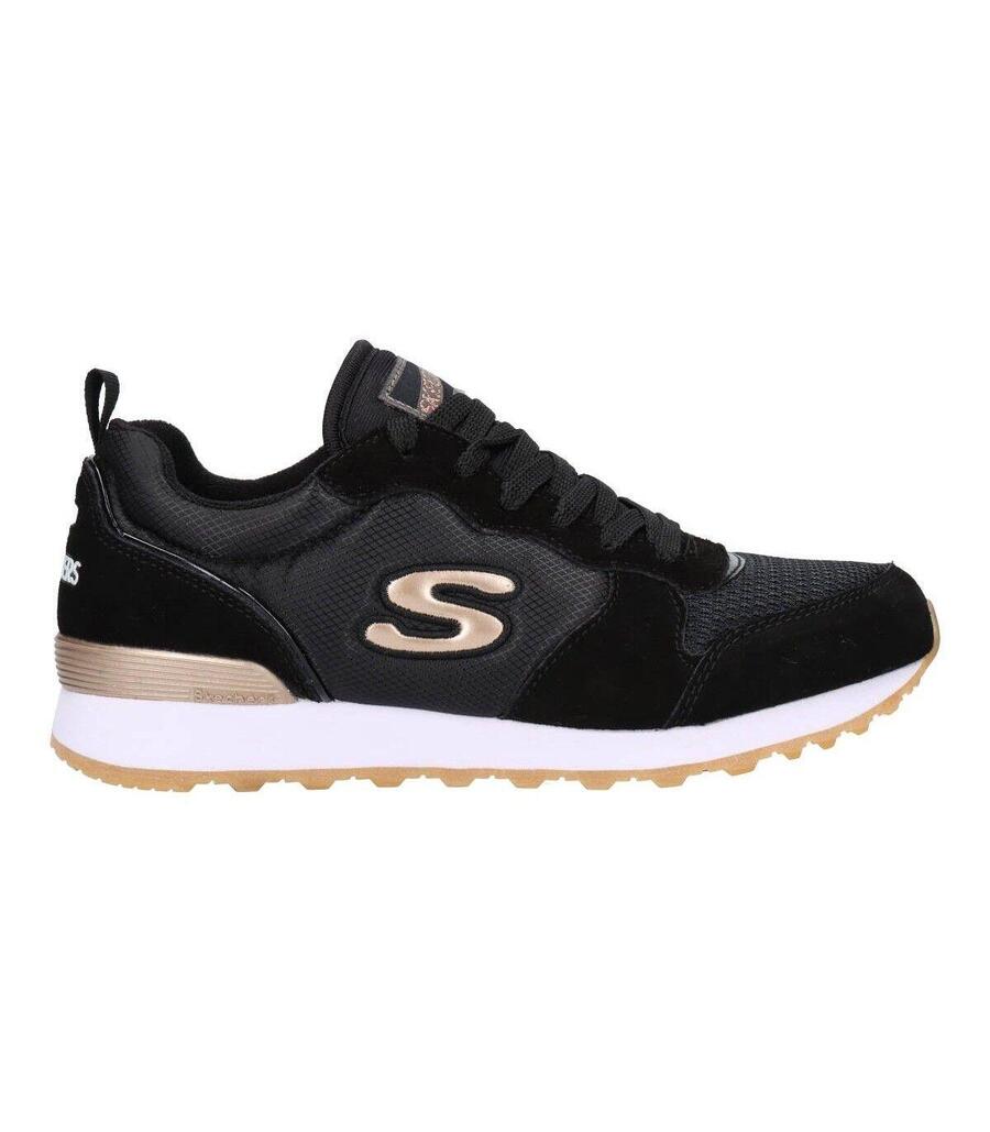 Оригинальная спортивная ретро-модель от Skechers, Skechers Street OG 85 — Gold'n Gurl, сочетающая в себе разнообразие винтажного и спортивного стиля. Это превосходная часть анте учтивого, синтетического материала и гвоздей с кордонами в части делантеры и плантильи с амортизацией SKECHERS Air Cooled Memory Foam.