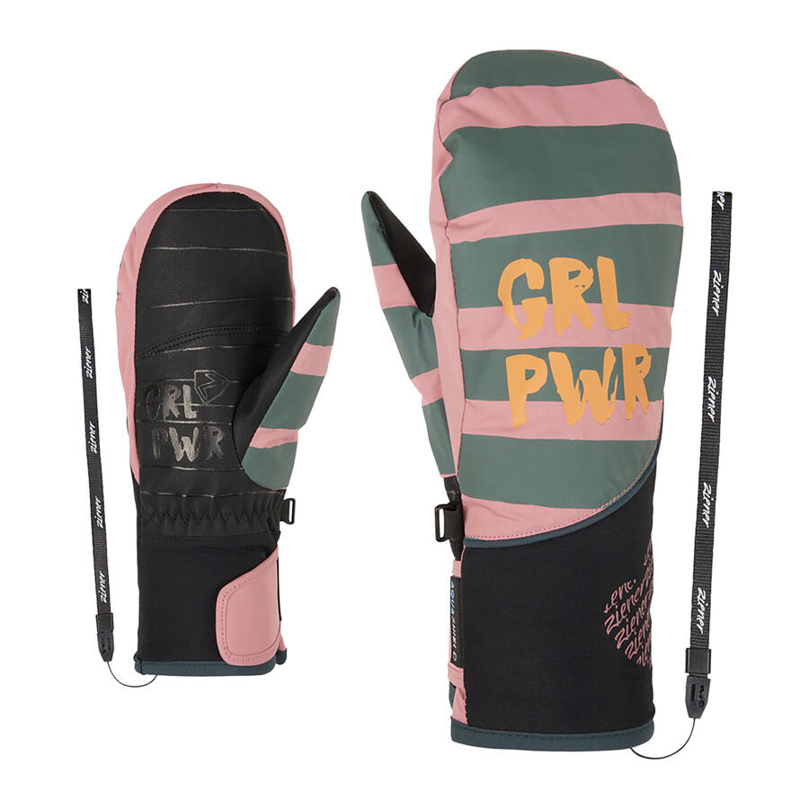 Тёплые и модные лыжные варежки LIWANI ASB PR MITTEN от ZIENER для девочек с тёплой и мягкой подкладкой PrimaLoft. Водонепроницаемая и ветрозащитная мембрана AQUASHIELD обеспечивает тёплый и сухой климат внутри перчаток. Печать на ладони обеспечивает оптимальное сцепление с лыжной палкой. Широкая застёжка-липучка позволяет носить перчатки под курткой. Перчатки можно закрепить на запястье с помощью Z-Leash. Модный полосатый дизайн с крутой надписью — это дополнительная порция GIRL POWER! Изделие изготовлено из переработанных материалов, что способствует бережному отношению к окружающей среде.