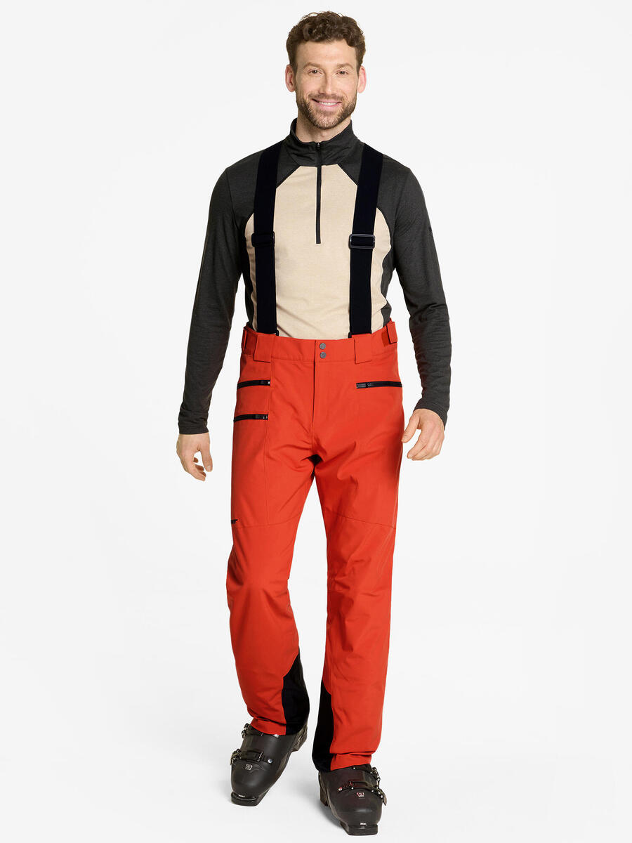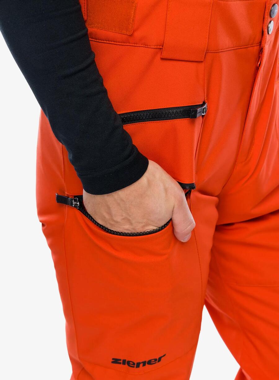 Функциональные мужские горнолыжные брюки ZIENER TRONADOR с утеплителем и съемными подтяжками выглядят непринужденно и стильно. Они оснащены дышащей, водонепроницаемой и ветрозащитной мембраной ZIENER AQUASHIELD (водяной столб 10 000 мм / воздухопроницаемость 10 000 г/м²/24 ч). Они обеспечивают теплый и сухой климат. Утеплитель плотностью 80 г/м² из дышащего и легкого утеплителя поддерживает постоянный тепловой баланс даже во влажном состоянии, обеспечивая оптимальный комфорт. Благодаря экологичной водонепроницаемости брюки не содержат PFC. Эргономичный крой в области колен и регулируемый пояс обеспечивают максимальную свободу движений и высокий комфорт. Брюки Regular Fit оснащены усиленной защитой кантов и снегозащитной вставкой для высокого функционального комфорта. Изделие изготовлено из переработанного материала для ресурсосберегающего использования.