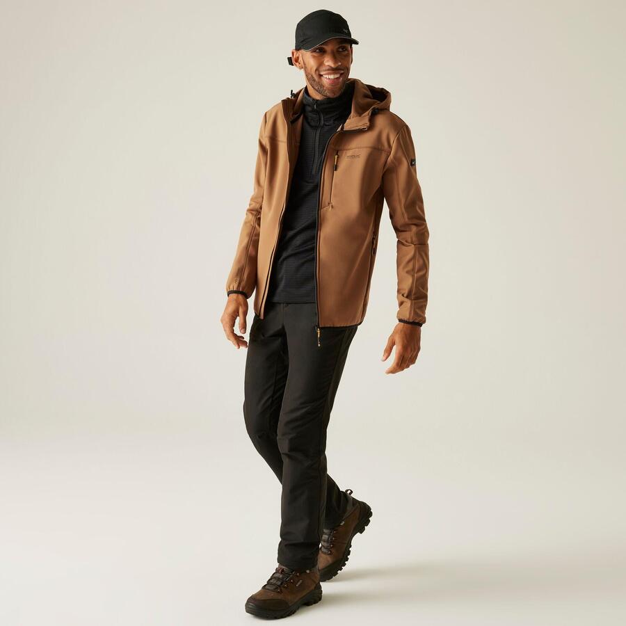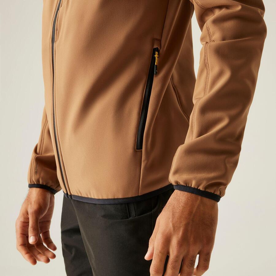Мужская софтшелловая куртка Ossek от Regatta сочетает в себе комфорт и стиль для активного отдыха. Эластичный софтшелл с флисовой подкладкой обеспечивает ветроустойчивость и гибкость, а водоотталкивающее покрытие защищает от небольшого дождя. Фиксированный капюшон, эластичные манжеты и три кармана на молнии гарантируют удобную посадку и функциональность в любых приключениях.
