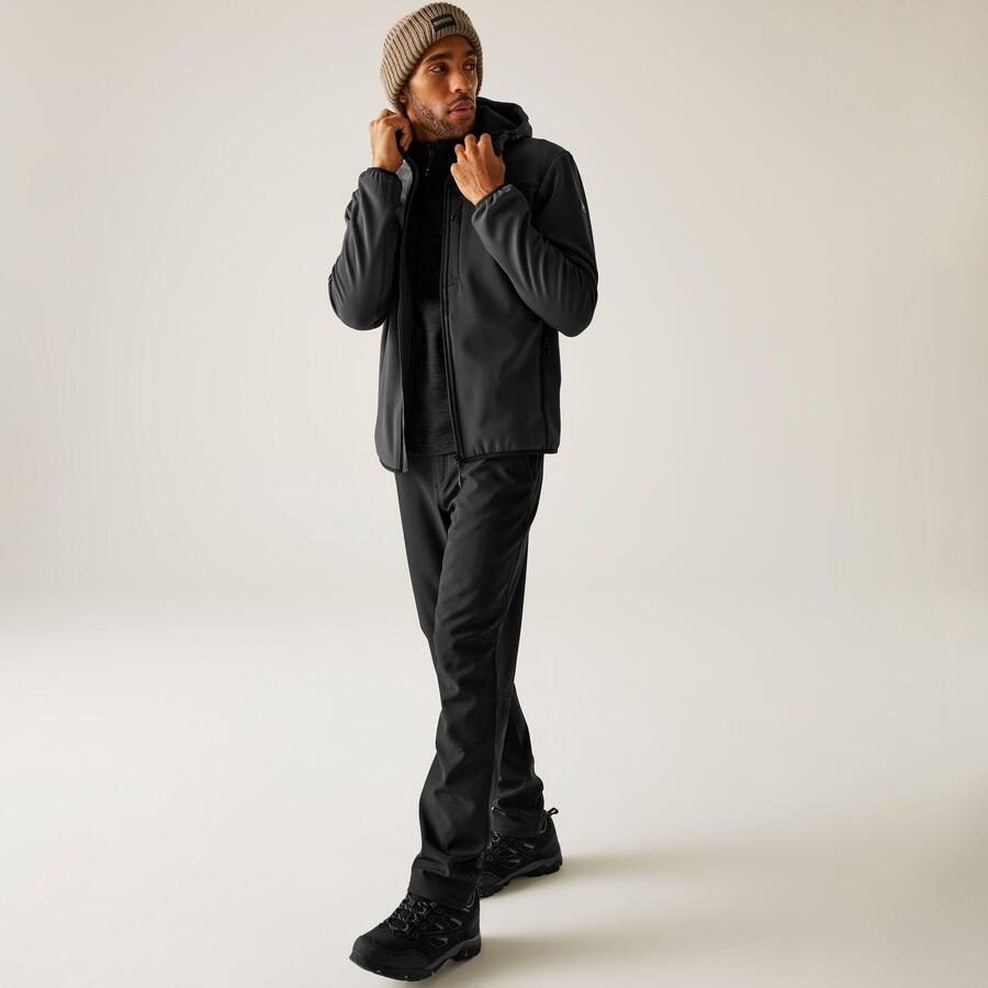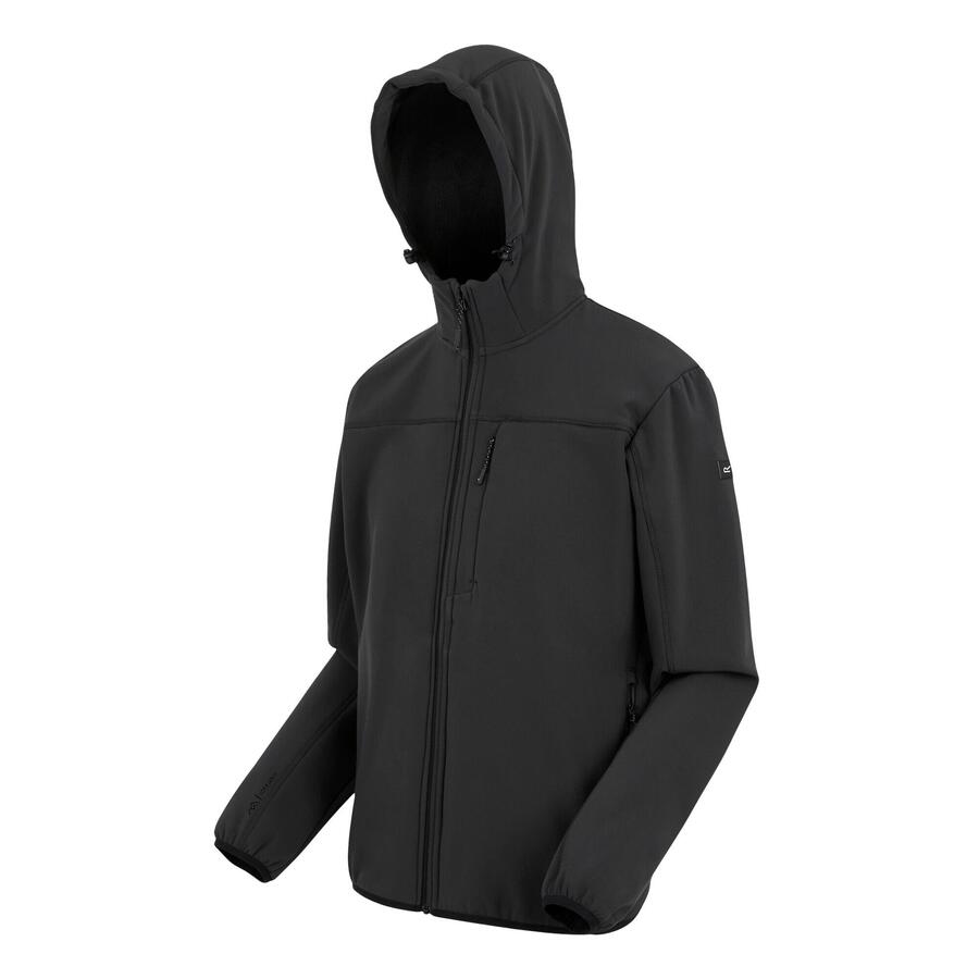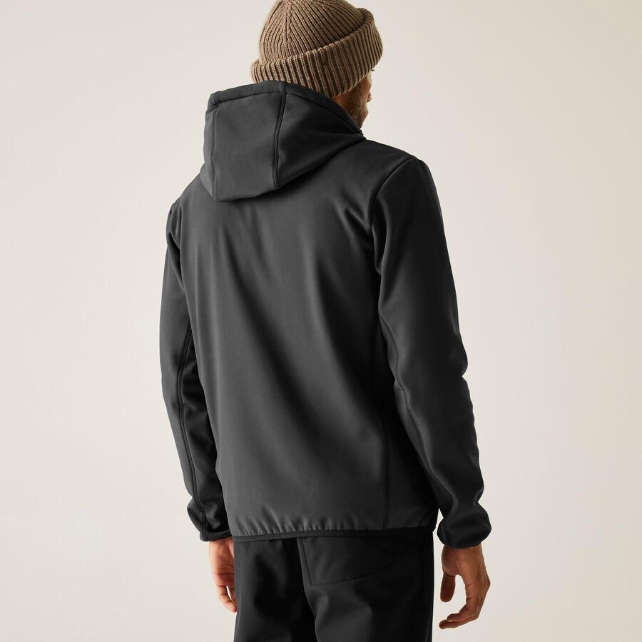 Мужская софтшелловая куртка Ossek от Regatta сочетает в себе комфорт и стиль для активного отдыха. Эластичный софтшелл с флисовой подкладкой обеспечивает ветроустойчивость и гибкость, а водоотталкивающее покрытие защищает от небольшого дождя. Фиксированный капюшон, эластичные манжеты и три кармана на молнии гарантируют удобную посадку и функциональность в любых приключениях.