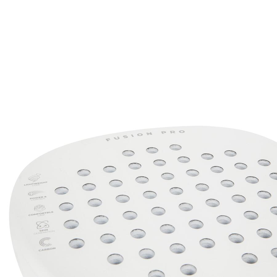 Материал и форма лопасти Центральная и высокая точка баланса Fusion Pro обеспечивает оптимальный контроль и мощность. Каплевидная головка ракетки имеет меньшее пятно наилучшего удара, чем круглые ракетки, что требует большей точности в ваших ударах. Использование высококачественного 18-каратного углеродного волокна делает эту ракетку исключительно жесткой и мощной, позволяя выполнять каждый удар с большой скоростью и вращением. Толщина оправы 38 мм обеспечивает дополнительную устойчивость и долговечность, а жесткий сердечник из пеноматериала EVA — оптимальную амортизацию и контроль.