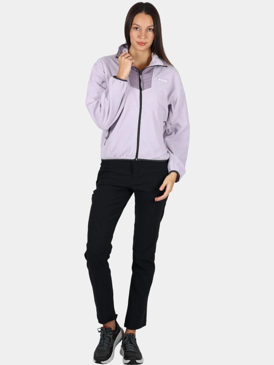 Columbia Sequoia Grove Full Zip Fleece — женская флисовая куртка из слегка эластичного материала. Эта приятная на ощупь флисовая куртка из полностью переработанного микрофлиса отлично подходит для походов, экскурсий и других видов спорта на свежем воздухе, а также может использоваться в качестве среднего слоя под горнолыжной одеждой зимой. Боковые карманы на молнии позволяют безопасно хранить небольшие ценные вещи во время активных занятий спортом. При необходимости флис можно использовать в качестве подкладки в технических куртках, а его расцветка хорошо сочетается с женской горнолыжной одеждой Columbia. Благодаря слегка эластичному материалу, эластичным манжетам и поясу, а также короткому покрою, мы также рекомендуем её для занятий спортом на свежем воздухе, предполагающего активную физическую активность (велосипедные прогулки весной и осенью, верховая езда, скандинавская ходьба и т. д.).