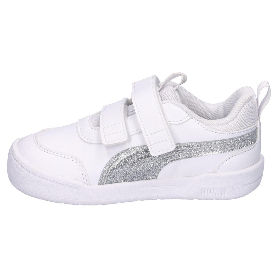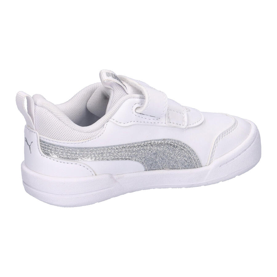 Кроссовки Puma для девочек Multiflex 2 Glitz FS V Inf. Семейство Multiflex возвращается — с новыми моделями: низкой, средней и высокой высоты. Multiflex — это повседневные кроссовки для активных детей, подходящие для школы, занятий спортом, отдыха и всего остального. Прочная и гибкая конструкция обеспечивает комфорт в течение всего дня, а удобная для детей застежка-липучка позволяет легко надевать и снимать кроссовки. С Multiflex вы всегда готовы к действию. Верх: другой материал. Подкладка и стелька: текстиль. Подошва: другой материал.