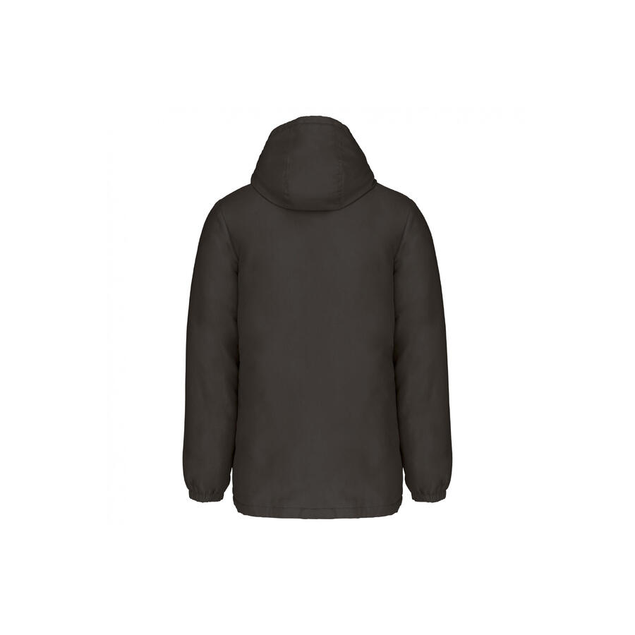 100% переработанный полиэстер. Водоотталкивающая ткань. Отделка под персиковую кожу для более мягкого ощущения. Подкладка из черной полиэстеровой тафты 210T. Стеганая внутренняя часть из 100% полиэстера. Удобный крой. Нейлоновая и металлическая молнии. Капюшон из трех панелей на полиэстеровой подкладке со шнурком и фиксаторами. 2 передних кармана на молнии. 1 внутренний карман на липучке. Эластичные манжеты. Удлиненная спинка для дополнительного комфорта. Тканевая нашивка на внутренней стороне воротника для персонализации. Потайная молния в центре и внизу изделия для персонализированного доступа. Отсутствие фирменной бирки для облегчения персонализации. Сертифицировано по стандарту 100 OEKO-TEX № CQ1007/7, IFTH.