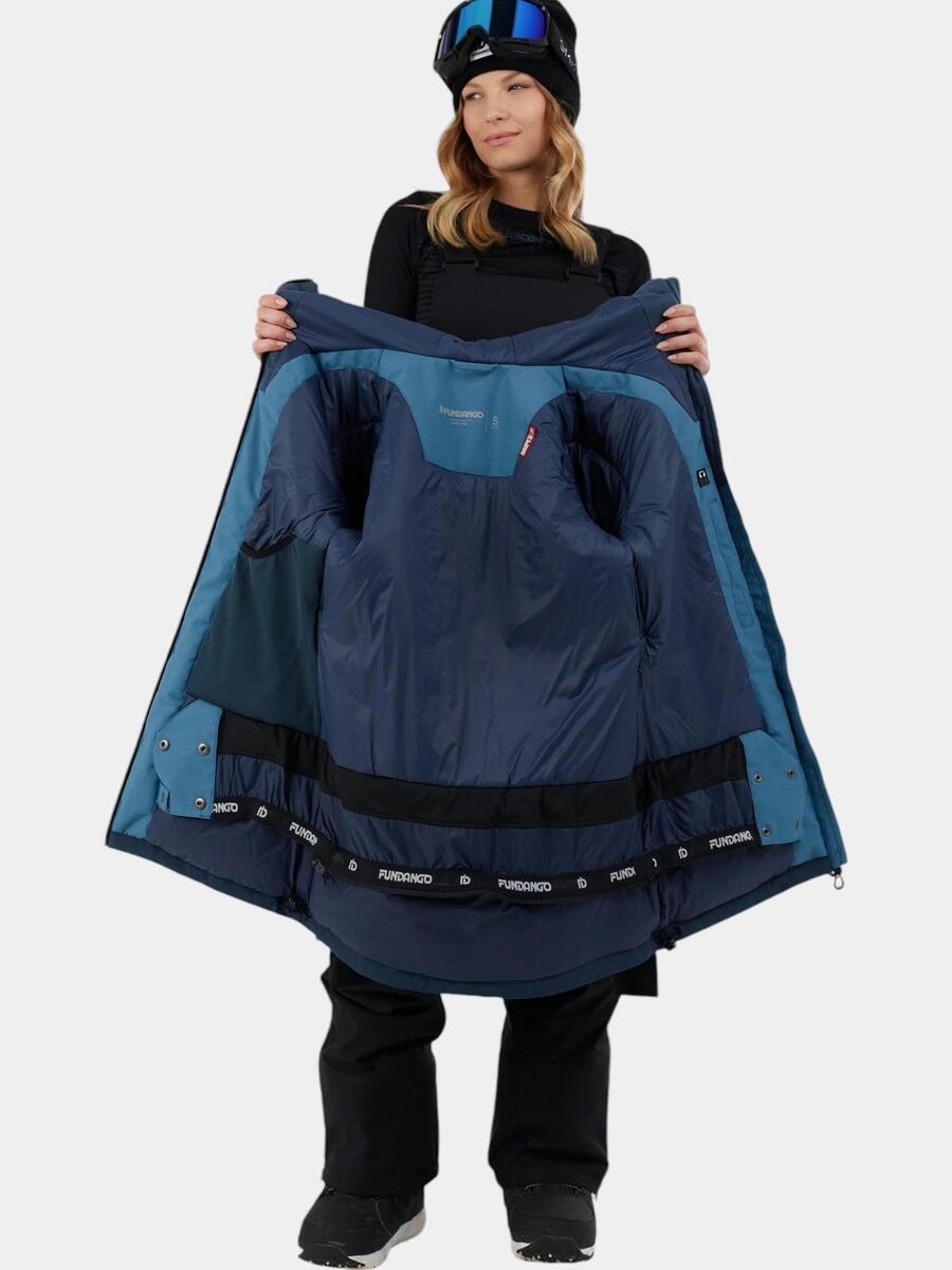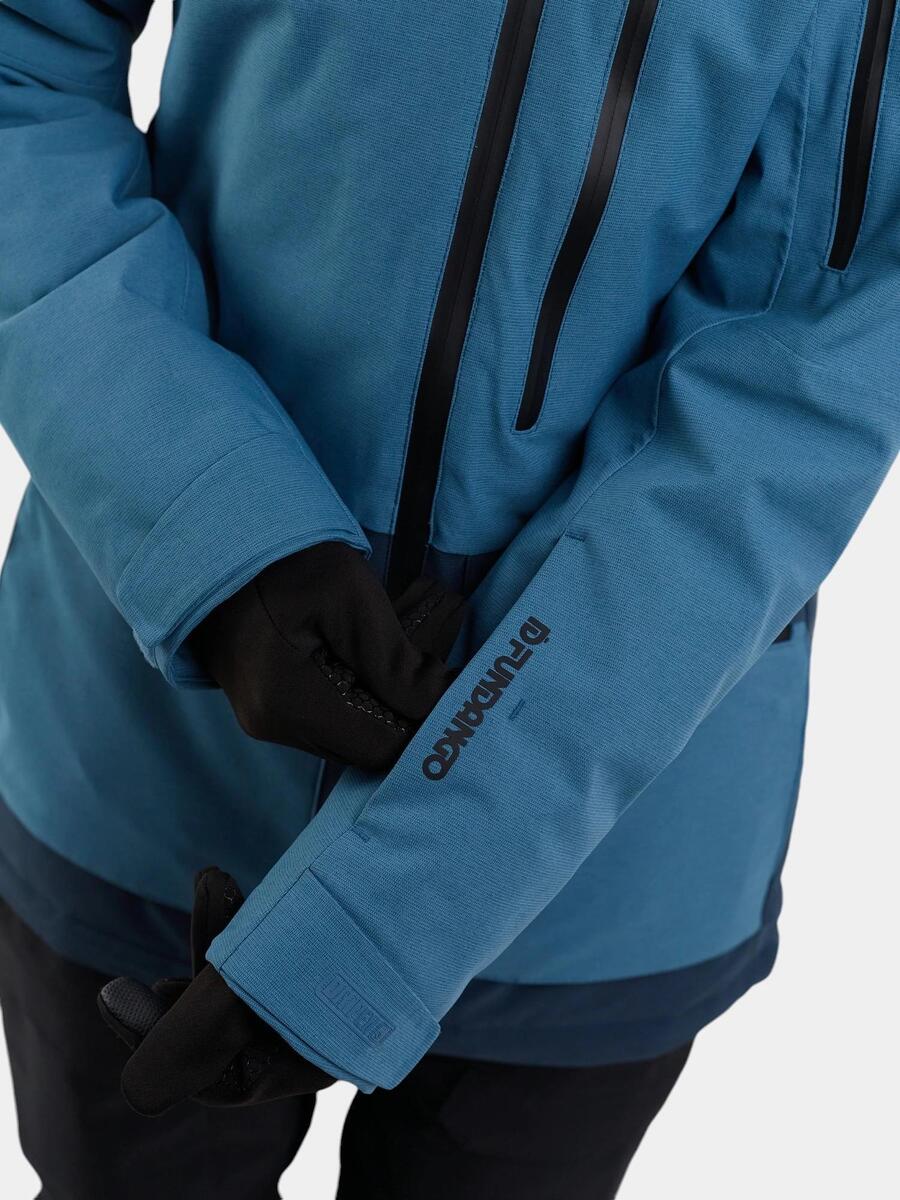 Женская горнолыжная куртка Fundango Poplar Eco Longline, изготовленная из 100% переработанного полиэстера, имеет регулируемые манжеты с застежками-липучками и петлями для больших пальцев, которые плотно облегают запястья, сохраняя руки в тепле, не стесняя движений. Сварные швы защищают от влаги. Разработка высококачественной мембраны Dripex, используемой в куртке, была вдохновлена и поддержана спортсменами, тренирующимися в экстремальных погодных условиях. Согласно их требованиям, куртка блокирует холодный ветер и нежелательную влагу, одновременно выводя пот при активном движении наружу. Значение 15 000 мм означает, что каждый квадратный сантиметр куртки должен выдерживать давление 15 000 мм водяного столба, не пропуская влагу. Этот показатель уже является признаком одежды премиум-класса: куртка остается водонепроницаемой даже под сильным дождем.
