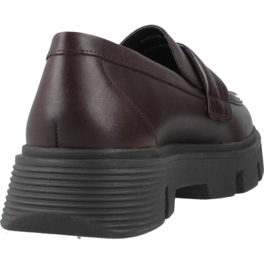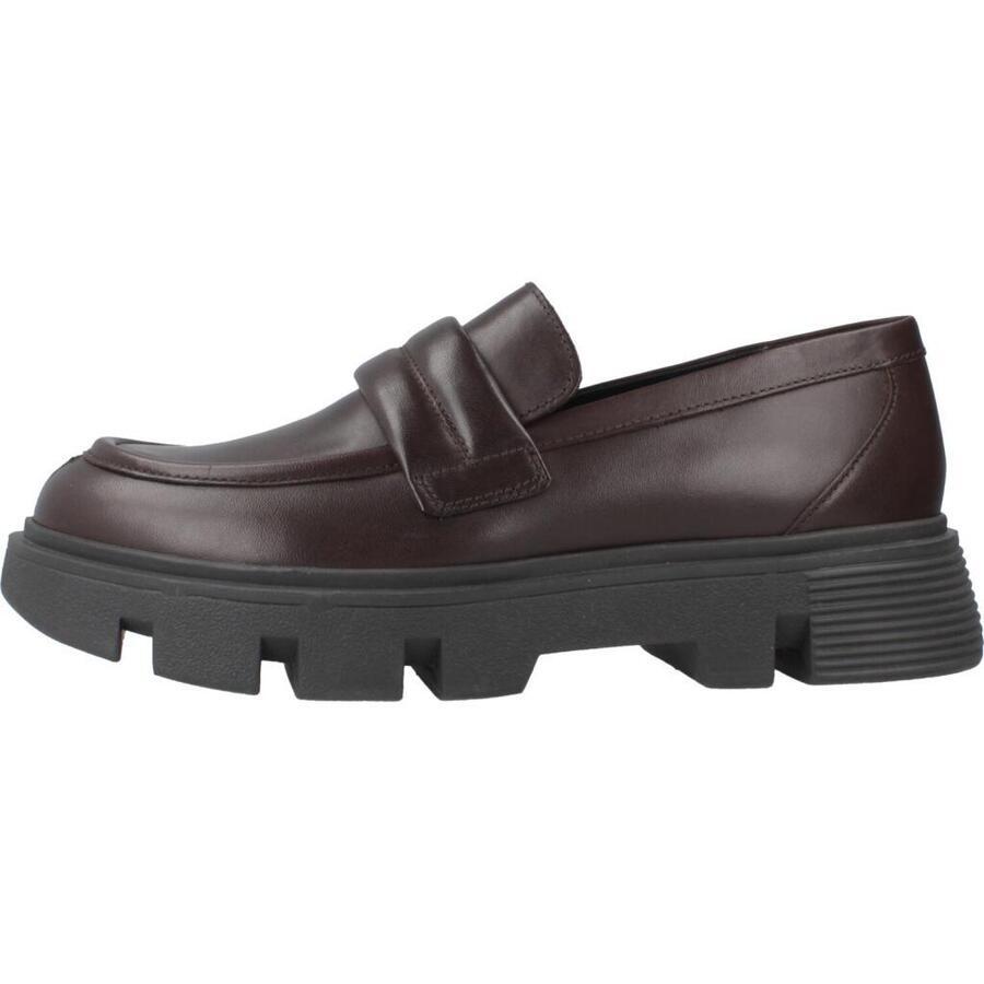 Модель D Vilde от Geox коричневого цвета с текстильной вставкой. Снаружи кожа. Конструкция: с подноском. Высота каблука: 4,5 см. Сделано в Индии.