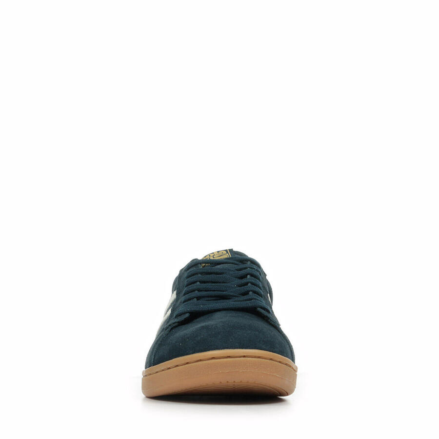 Если вам нужны надёжные кроссовки, мужские Equipe II Suede — беспроигрышный вариант. Эта тёмно-синяя кожаная модель на резиновой подошве со шнурками и дымчатыми деталями Gola универсальна и легко сочетается с повседневными образами. Зелёный каблук добавляет эффектный штрих, сочетая современность с классикой кроссовок.