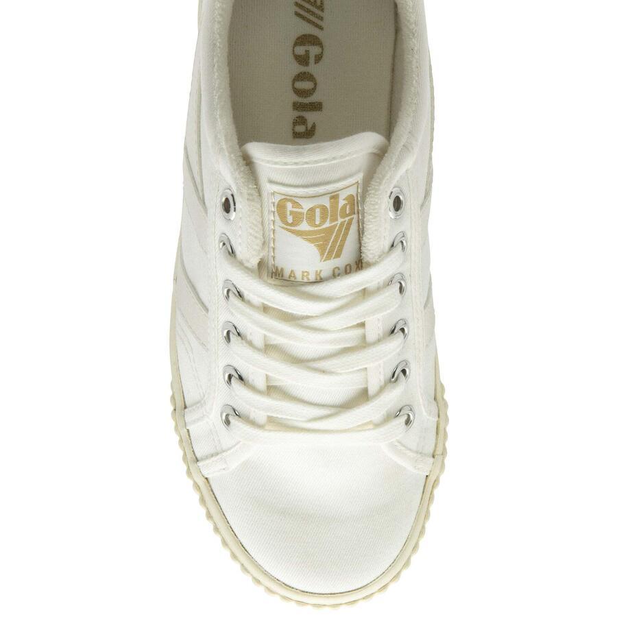 Gola Classics представляет Tennis – Mark Cox. Вдохновленная оригинальной моделью Gola 1975 года, которую носил теннисист Марк Кокс, модель Tennis воплощает в себе долгую историю Gola в ракеточных видах спорта. Эти женские кеды, вдохновлённые теннисом, имеют верх бежевого цвета с белыми вставками в тон. Золотой логотип Gola расположен на язычке и пятке. Эта модель также доступна в бежевом/малиновом цветах.