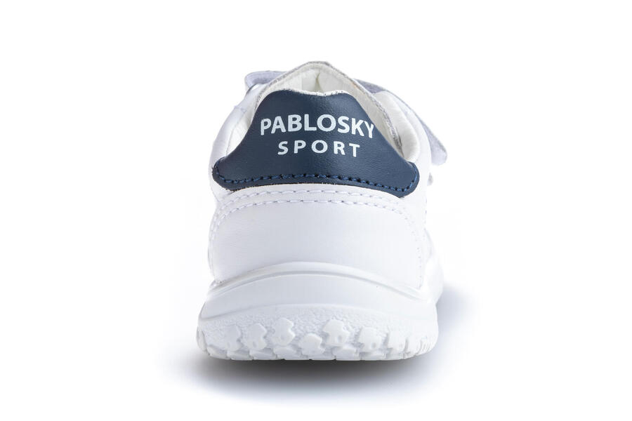 Модель 200002p бренда Pablosky, белого цвета, текстильная. Снаружи – искусственная кожа. Конструкция: слип-он. Сделано в Испании.