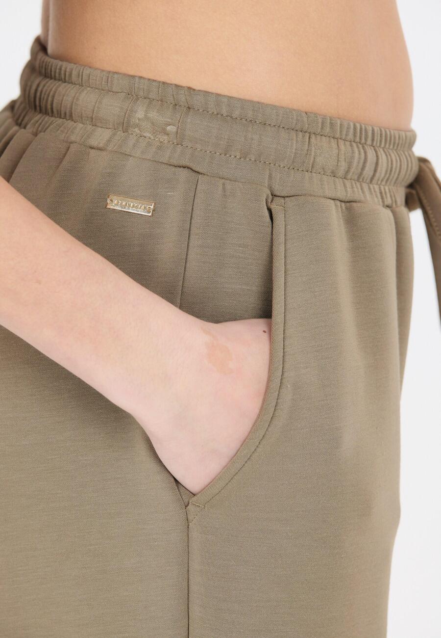 Женские спортивные брюки Jacey V2 от ENDURANCE — идеальный вариант для отдыха благодаря своему простому дизайну! Изготовленные из 51% полиэстера, 44% модала и 5% эластана, они особенно мягкие и обеспечивают невероятно комфортную посадку благодаря эластичности. Это обеспечивает полную свободу движений. Эластичный пояс со шнурком позволяет легко надевать и снимать брюки, а также обеспечивает комфортную посадку.