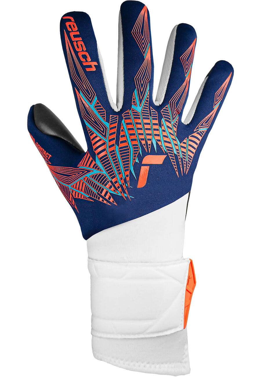 Выбирайте Reusch Pure Contact Silver для непревзойденного сцепления и амортизации! Мягкий, объёмный латекс обеспечивает непревзойденную поддержку и поглощает сильные удары. Конструкция с латексом, обернутым вокруг указательного пальца и мизинца, гарантирует точный контроль мяча. Полностью растянутая неопреновая тыльная сторона с эластичным текстилем на запястье стабилизирует руку, обеспечивая комфорт и современный дизайн. Лёгкие, гибкие и цельные, перчатки облегают руку, как вторая кожа, и выводят мобильность и комфорт на новый уровень. Анатомический крой, предварительное расположение пальцев и закруглённая конструкция между большим и указательным пальцами обеспечивают естественное положение при захвате, идеальную посадку и максимальный комфорт. Благодаря удлинённой подушечке для большого пальца и трёхмерной посадке, Pure Contact Silver устанавливает новые стандарты!