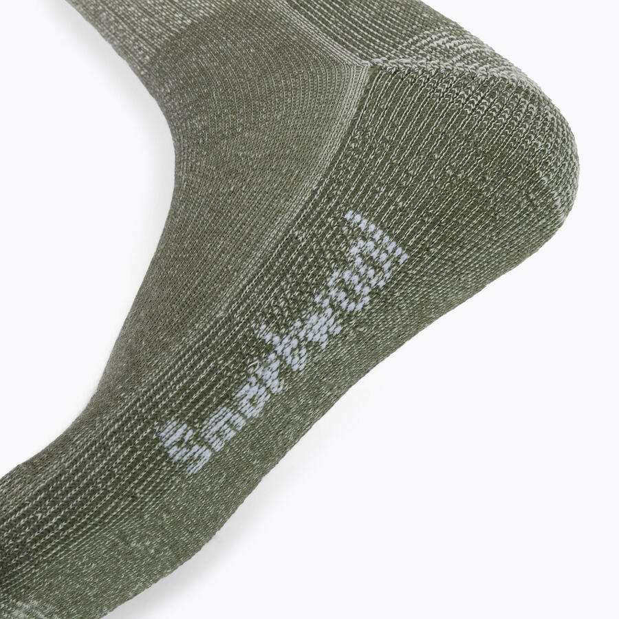 Женские носки Classic Hike Light Cushion Crew идеально подходят для треккинга и других видов активного отдыха. Они изготовлены из переработанного нейлона. Их конструкция идеально подходит для узкой женской стопы, гарантируя, что они не будут мяться и сползать с пятки. Классическая высота позволяет комфортно носить их с треккинговыми ботинками, не опасаясь болезненных натираний, а усиление по всей подошве повышает комфорт при интенсивной ходьбе. Эластичная вставка в области подъема дополнительно улучшает посадку, а плоский шов в области носка обеспечивает высокий уровень комфорта и предотвращает появление мозолей и дискомфорта при спусках. Для изготовления носков использовалась высококачественная мериносовая шерсть, которая обеспечивает превосходные терморегулирующие свойства и оптимальное тепло при любой температуре. Носки дышащие и эффективно отводят влагу, а их антибактериальные свойства препятствуют размножению бактерий и грибков, вызывающих неприятные запахи.