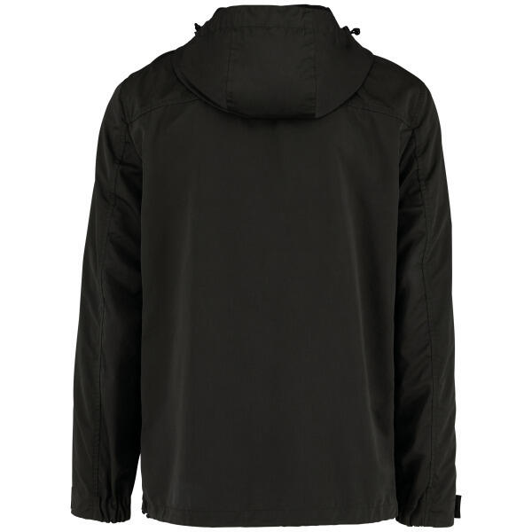 87% полиэстер (35% переработанный) / 13% полиамид. Кнопки с электростатической краской и металлом. Водоотталкивающая ткань. Пластиковые молнии с металлическими бегунками. Боковые карманы с перевернутыми молниями (водоотталкивающие). Капюшон из полиамидной ткани рипстоп с клетчатым рисунком. Застежка на липучку на манжетах + полуэластичная резинка. Подкладка из ткани рипстоп с воланом сзади для удобства персонализации. Косая бейка по проймам, по бокам изделия и на внутренней стороне рукавов. Вентиляционные отверстия сзади под рукавами. Эластичный нижний край, кулиска со фиксатором по бокам. Планка с пуговицами и застежкой на кнопки по центру спереди.