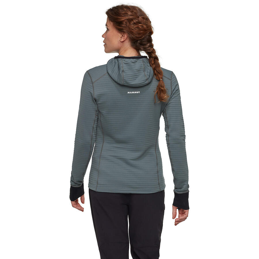 Легкая, удобная и эластичная ткань. Прочный материал благодаря содержанию полиамида. Активное отведение влаги предотвращает быстрое охлаждение. Очень хорошее соотношение тепла и веса. Плотно прилегающий капюшон, который можно надевать под шлем. Капюшон с эластичной окантовкой. Функциональные вставки под мышками для оптимальной свободы движений. Плоские швы для повышенного комфорта при ношении и предотвращения натирания под рюкзаком. Петля для большого пальца. Сертификат Bluesign PRODUCT Fair Wear.