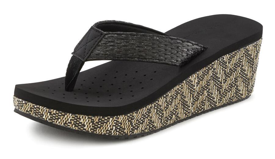 Веганские шлёпанцы с водоотталкивающей подошвой от VENICE BEACH. Идеально подходят для пляжа и бассейна. Высота каблука около 6,5 см. Верх и подкладка из текстиля. Синтетическая стелька и подошва. S35147014
