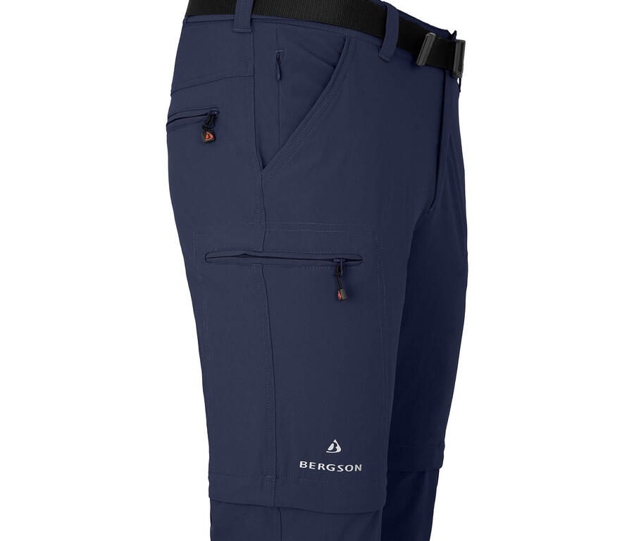 Универсальные, биэластичные мужские брюки для активного отдыха и походов с двойной застежкой-молнией и Т-образной молнией из водоотталкивающего, быстросохнущего материала. Многофункциональные мужские брюки для активного отдыха, походов, треккинга, велоспорта или функциональные брюки для отдыха. Ткань Dryprotec для быстрого отвода влаги и быстрого высыхания. Биэластичная ткань для идеальной посадки и свободы движений. Двойная функция застежки-молнии (бермуды и длина 3/4). Функция Т-молнии с застежкой-молнией на штанине. 2 боковых кармана, 2 кармана на штанине на молнии. 1 задний карман на молнии, 1 защитный карман на молнии. Пояс на флисовой подкладке со шлевками для ремня и ремнем. Универсальные брюки 3 в 1 с отстегивающимися штанинами особенно популярны и полезны для длительных походов. Эти мужские функциональные брюки из биэластичного материала - отличный выбор. Эти очень быстросохнущие брюки для походов и отдыха на природе можно быстро стирать между использованиями. Их можно отстегнуть на бермуды и короткие брюки. Т-образная молния внизу штанины особенно практична, поэтому вам не придётся снимать обувь, чтобы их расстегнуть. Среди других деталей: эластичный пояс с ремнём, карманы для безопасности, карманы на штанинах и задние карманы.