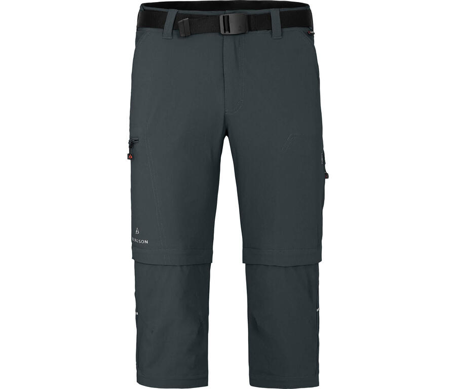 Универсальные, биэластичные мужские брюки для активного отдыха и походов с двойной застежкой-молнией и Т-образной молнией из водоотталкивающего, быстросохнущего материала. Многофункциональные мужские брюки для активного отдыха, походов, треккинга, велоспорта или функциональные брюки для отдыха. Ткань Dryprotec для быстрого отвода влаги и быстрого высыхания. Биэластичная ткань для идеальной посадки и свободы движений. Двойная функция застежки-молнии (бермуды и длина 3/4). Функция Т-молнии с застежкой-молнией на штанине. 2 боковых кармана, 2 кармана на штанине на молнии. 1 задний карман на молнии, 1 защитный карман на молнии. Пояс на флисовой подкладке со шлевками для ремня и ремнем. Универсальные брюки 3 в 1 с отстегивающимися штанинами особенно популярны и полезны для длительных походов. Эти мужские функциональные брюки из биэластичного материала - отличный выбор. Эти очень быстросохнущие брюки для походов и отдыха на природе можно быстро стирать между использованиями. Их можно отстегнуть на бермуды и короткие брюки. Т-образная молния внизу штанины особенно практична, поэтому вам не придётся снимать обувь, чтобы их расстегнуть. Среди других деталей: эластичный пояс с ремнём, карманы для безопасности, карманы на штанинах и задние карманы.
